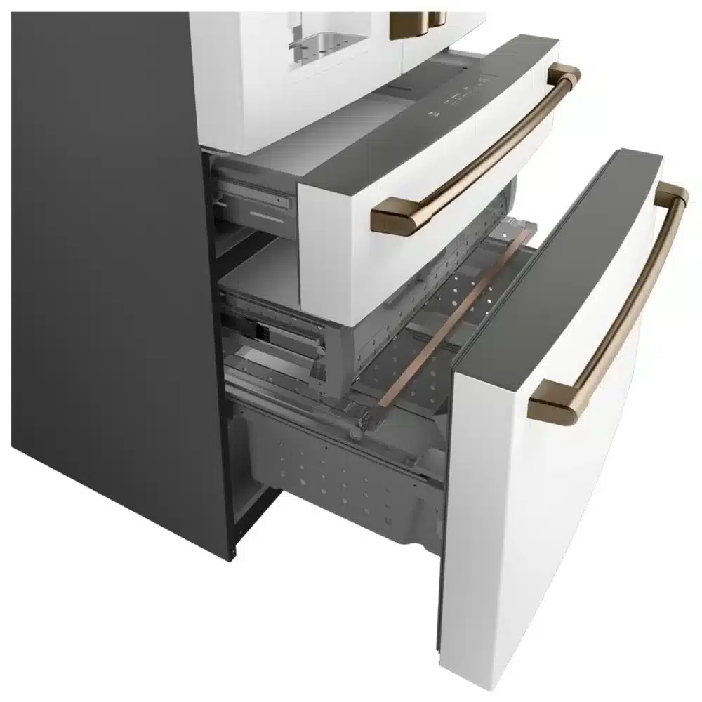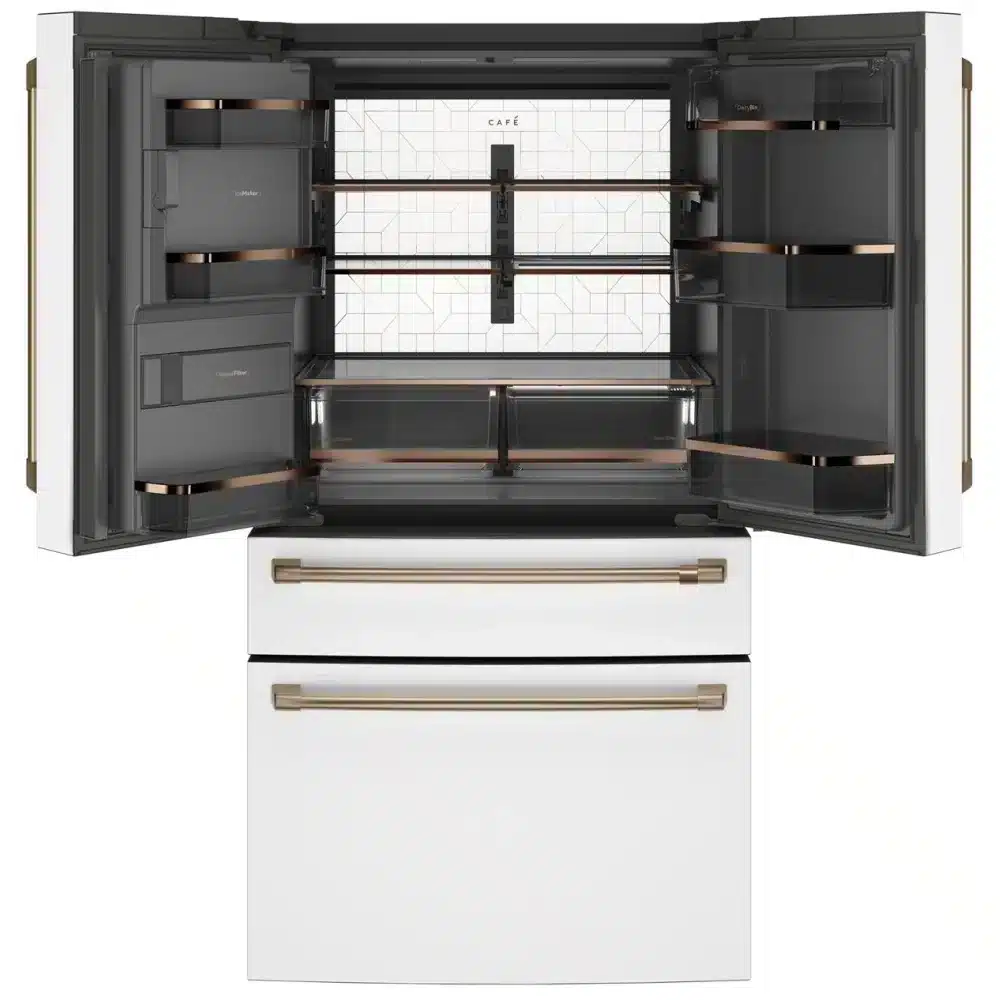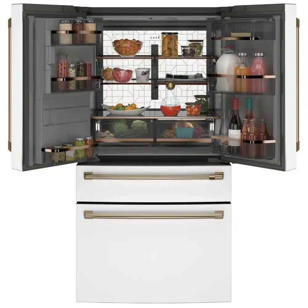 Café French Door Refrigerator 36 inches, 27.8 cu. ft., Water & Ice Dispenser, Matte White – CVE28DP4MW2