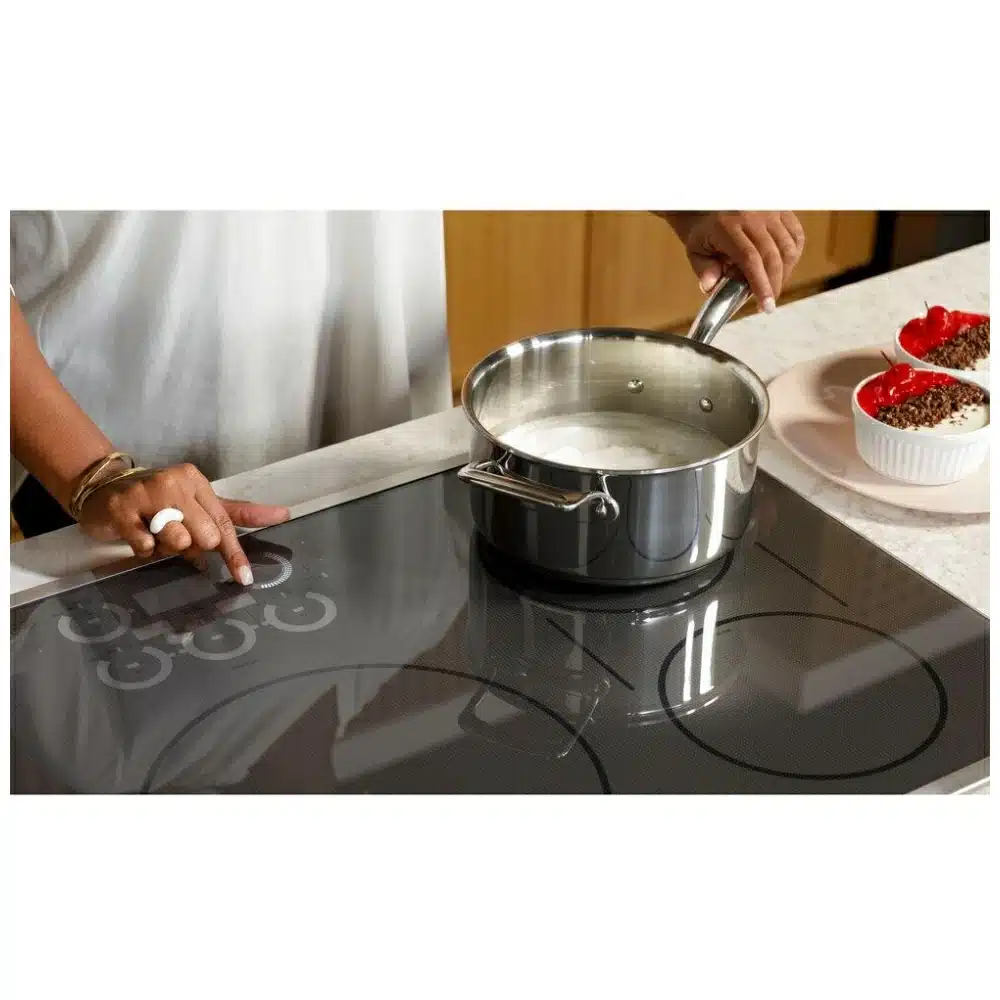 The 36 inch built-in format fits larger countertops. The smooth surface helps simplify cleaning and maintains a clean appearance.