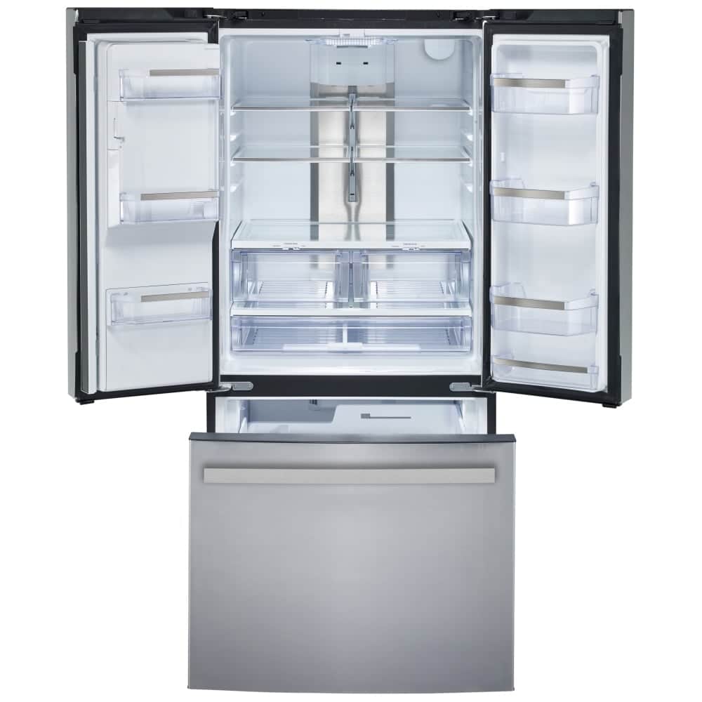 GE Profile 17.5 cu.ft. French Door Refrigerator, 33″, Counter-Depth, Water & Ice Dispenser, Stainless Steel – PYE18HYRKFS