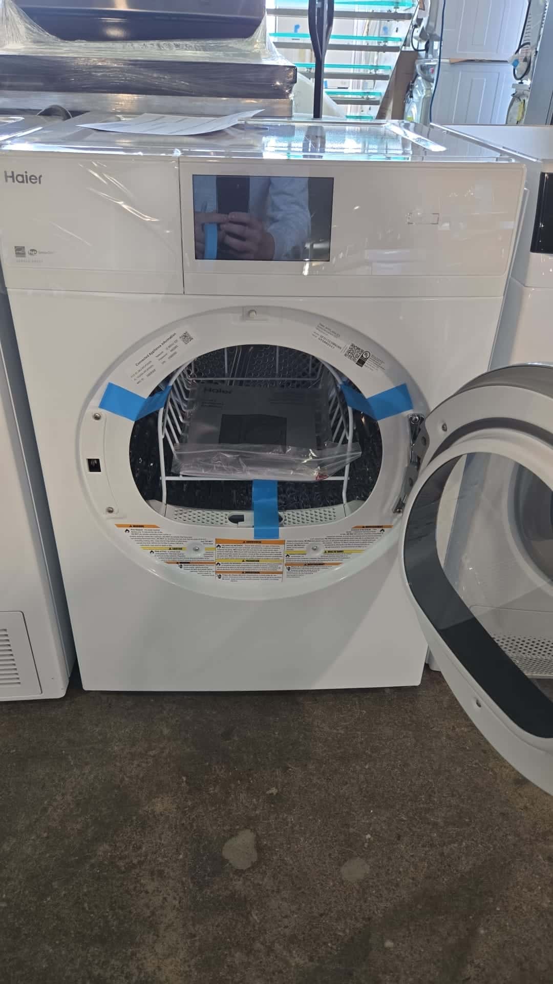 Haier Electric Dryer – 24″ W × 33.3″ H × 24″ D, 4.1 cu. ft., Wi-Fi Enabled, White – QFD15ESMNOWW