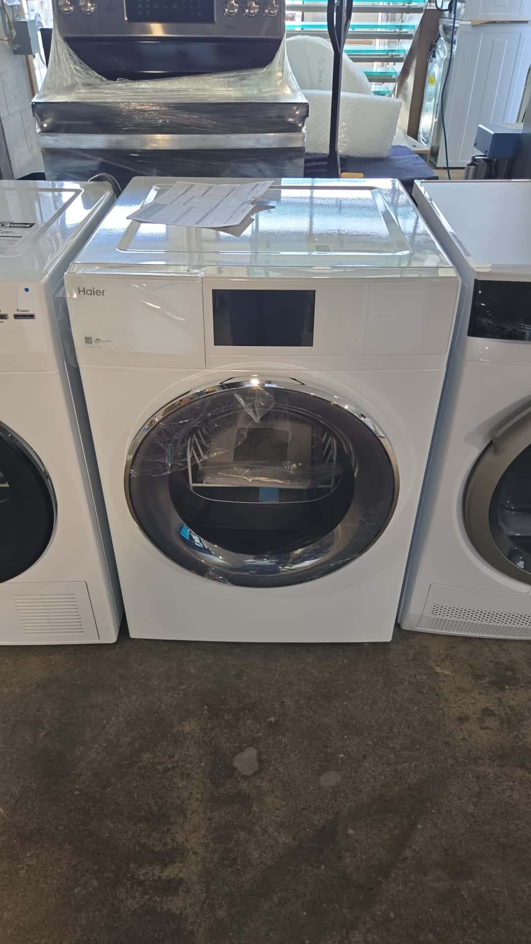 The Haier QFD15ESMNOWW electric dryer delivers compact efficiency and modern convenience. Designed for smaller spaces, it offers powerful drying performance and smart Wi-Fi control in a sleek, stackable design.