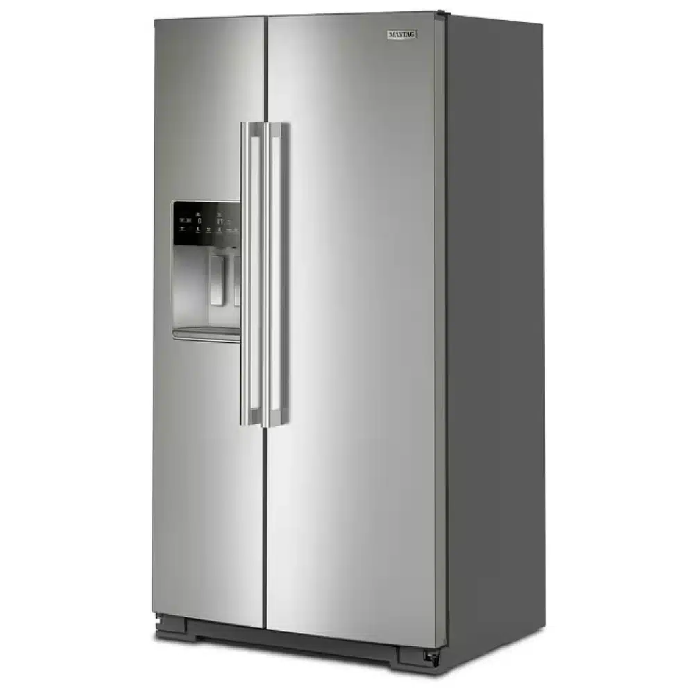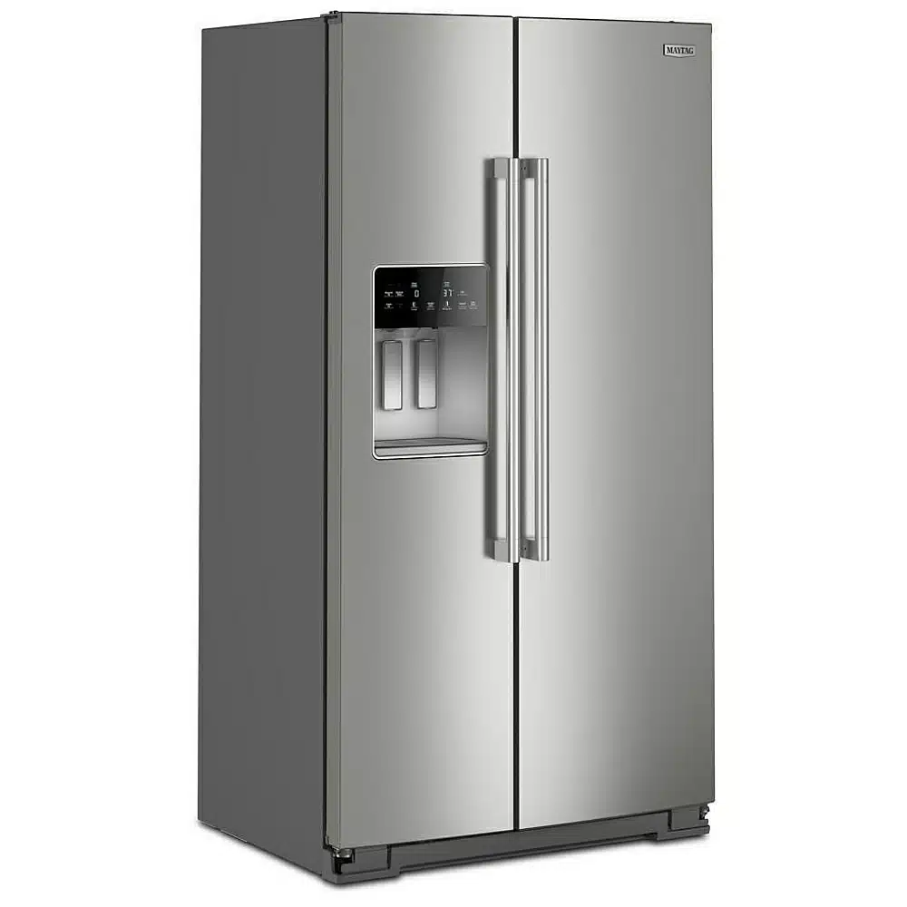 The Maytag MRSC6636RZ00 side-by-side refrigerator delivers the perfect balance of capacity, style, and functionality. With a 36-inch width and 20.8 cu. ft. capacity, it is built in a counter-depth design for a sleek, integrated look. Featuring an external water dispenser and thru-the-door ice, it provides quick and convenient access to fresh drinks. Its fingerprint-resistant stainless steel finish ensures easy maintenance and long-lasting style.