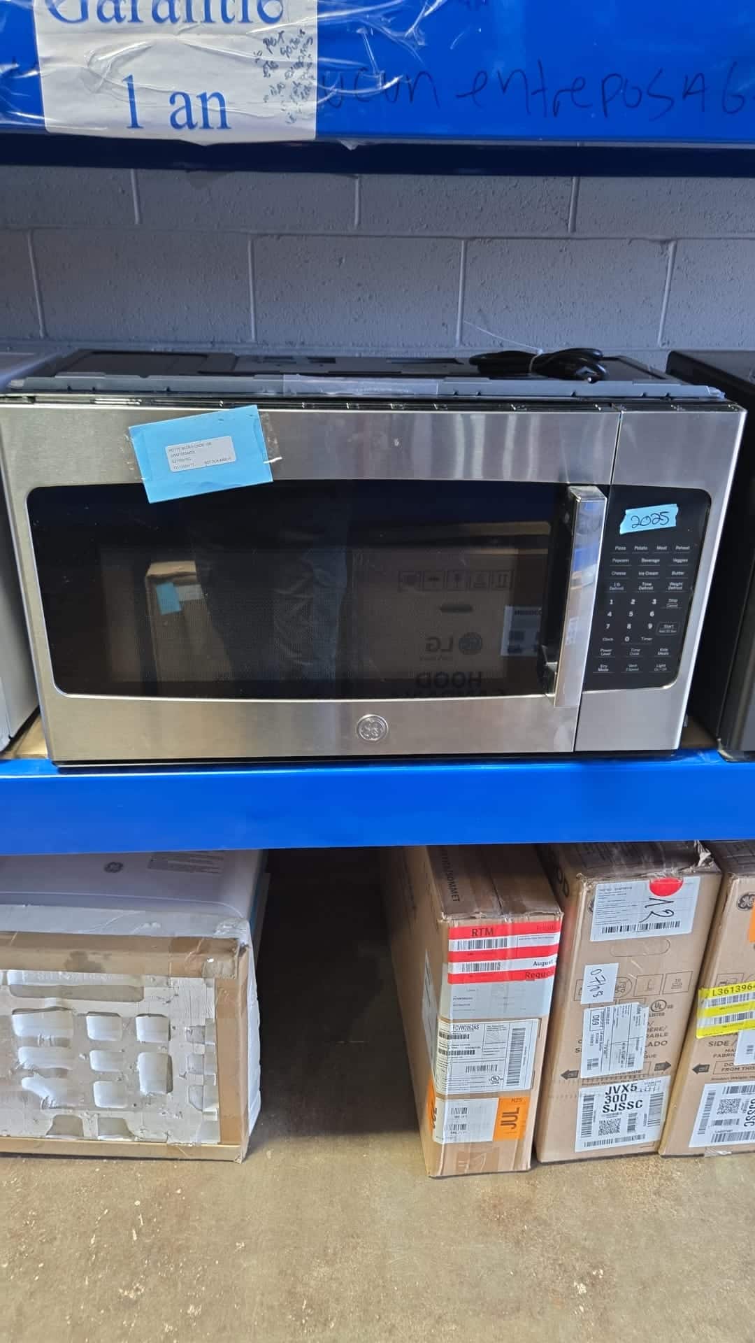 Four à micro-ondes à hotte intégrée GE 30 pouces, 1,6 pi³, 300 CFM, 1 000 W, éclairage halogène, inox – JVM2165SMSS