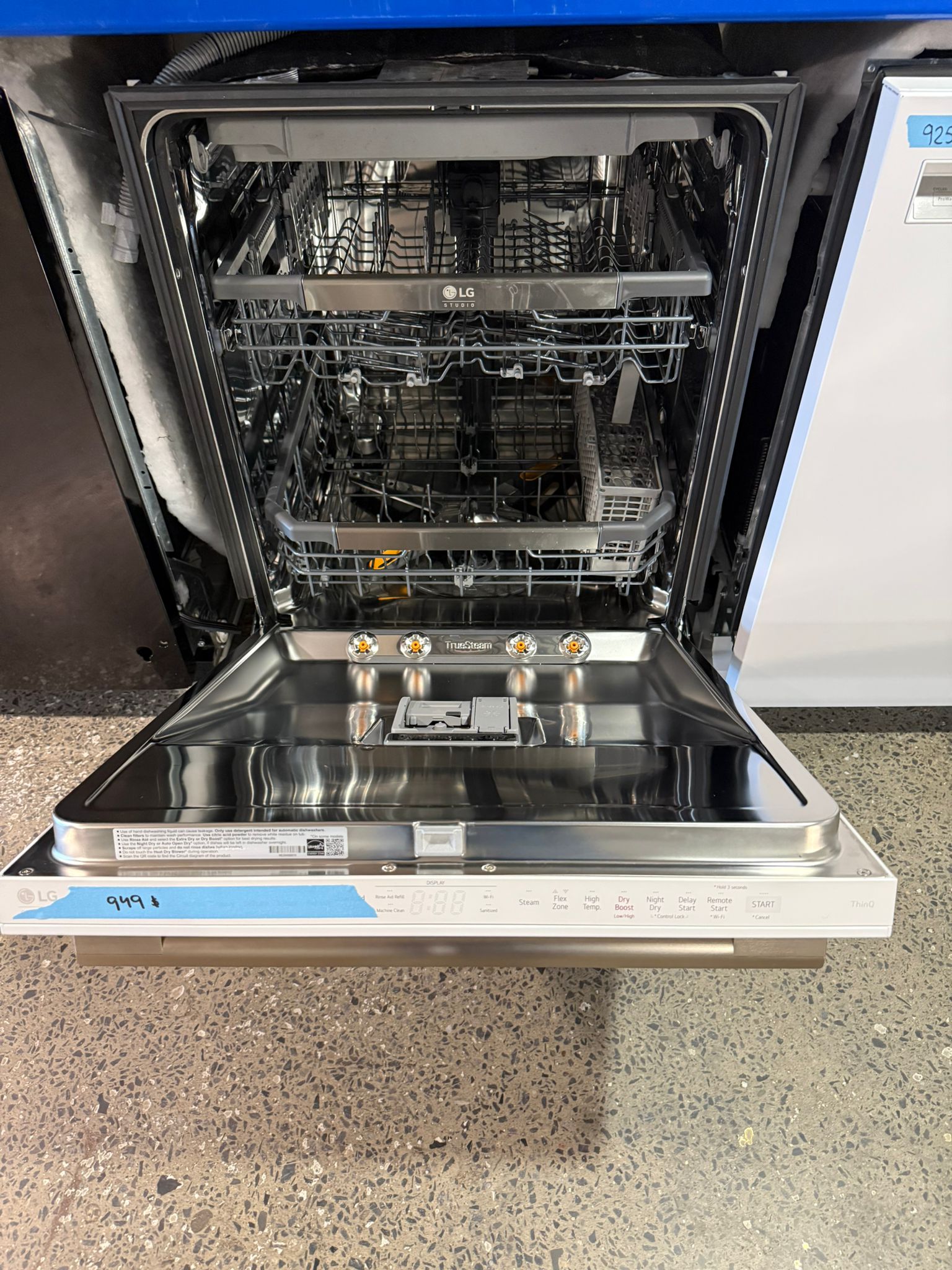 Le lave-vaisselle LG SDWB24W3 de 24 pouces combine design épuré, efficacité et technologie de pointe. Avec une capacité de 15 couverts, il offre une performance de lavage exceptionnelle grâce à son système QuadWash Pro, qui propulse l’eau sous plusieurs angles pour un nettoyage complet en moins de temps. La fonction TrueSteam utilise la puissance de la vapeur pour éliminer les résidus tenaces et réduire les taches d’eau sur la vaisselle. Le mode 1 Hour Wash & Dry assure un lavage et un séchage complets en seulement 60 minutes, idéal pour les repas rapides ou les réceptions. Son moteur DirectDrive silencieux, à seulement 40 dB, en fait un appareil quasi inaudible, parfait pour les cuisines à aire ouverte. Le système Dynamic Heat Dry garantit un séchage efficace sans humidité, tandis que la cuve en acier inoxydable NeveRust assure une durabilité à long terme. La connectivité Wi-Fi ThinQ permet un contrôle à distance et des diagnostics intelligents via application mobile. Son design en blanc mat moderne avec panneau de commande dissimulé s’agence parfaitement à toutes les cuisines contemporaines.