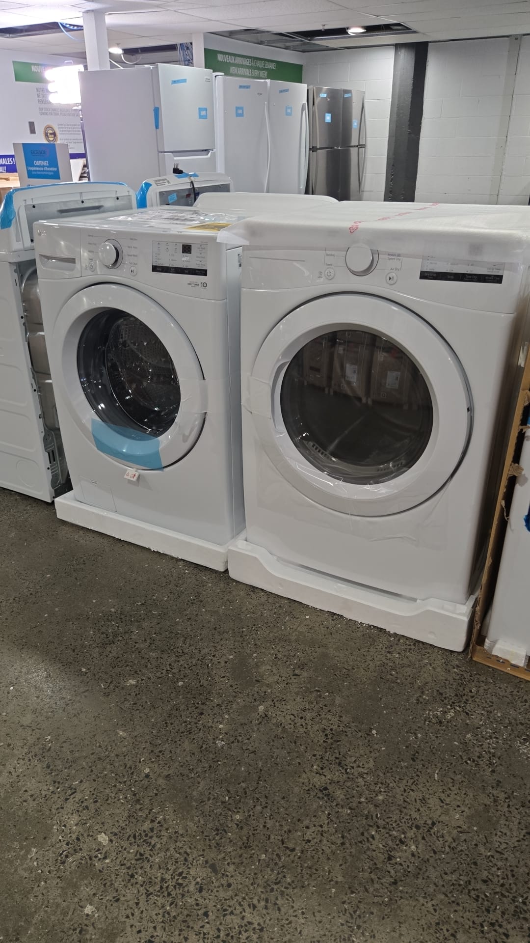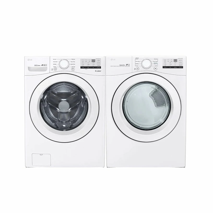 Laveuse et sécheuse LG – 27″, 5,2 pi³ / 7,4 pi³, 1 300 RPM, 8 cycles, empilable, blanc – WM3400CW & DLE3400W