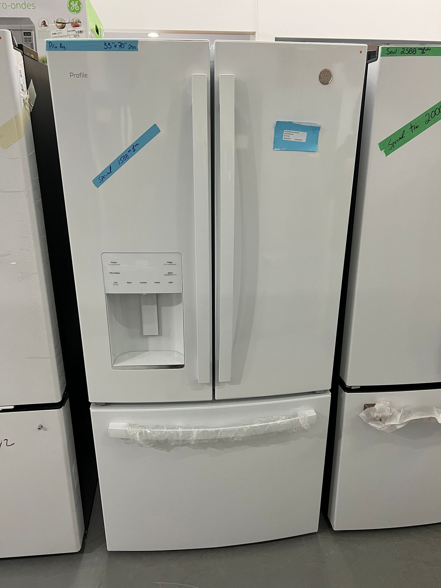 Réfrigérateur à portes françaises 33″, GE Profile, 23,8 pi³, distributeur d’eau et glaçons, blanc – PFE24HGLKWW