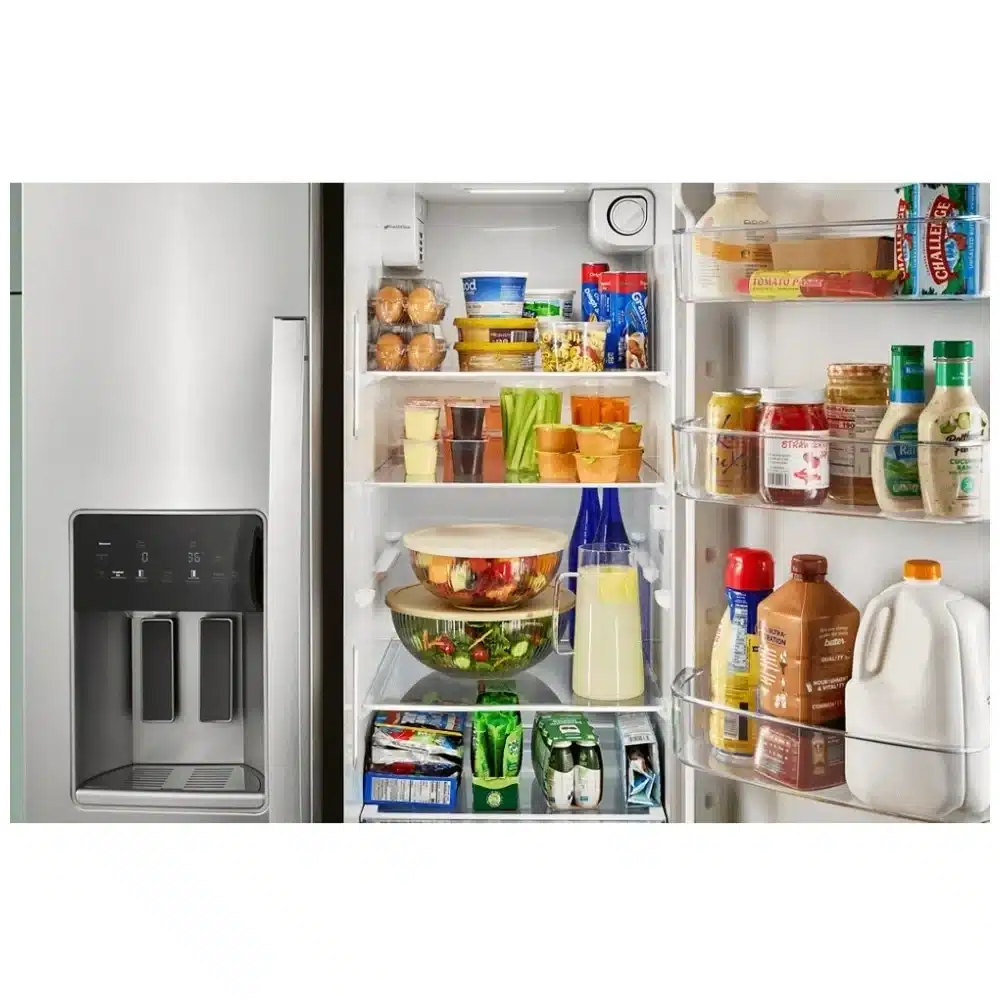 Le format côte-à-côte permet un accès rapide aux aliments frais et surgelés. Les distributeurs à travers la porte ajoutent un accès simple au quotidien.