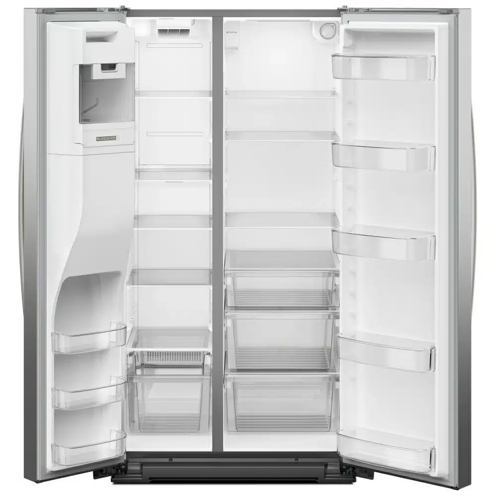 Le réfrigérateur côte-à-côte WHIRLPOOL WRSF5536RZ offre une capacité de 28.49 pi. cu dans un format de 36 pouces. Sa finition inox s’intègre facilement à la cuisine, avec un distributeur d’eau extérieur et un distributeur de glace à travers la porte pour un usage quotidien.