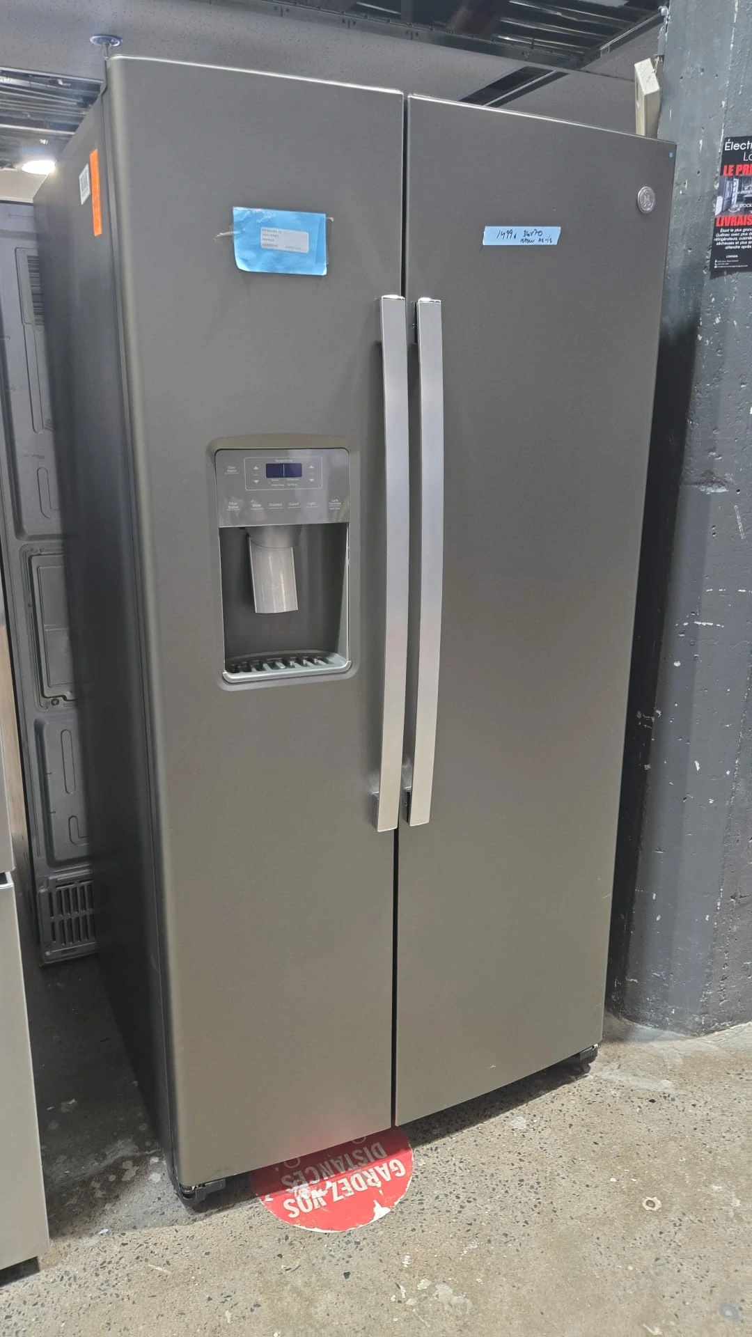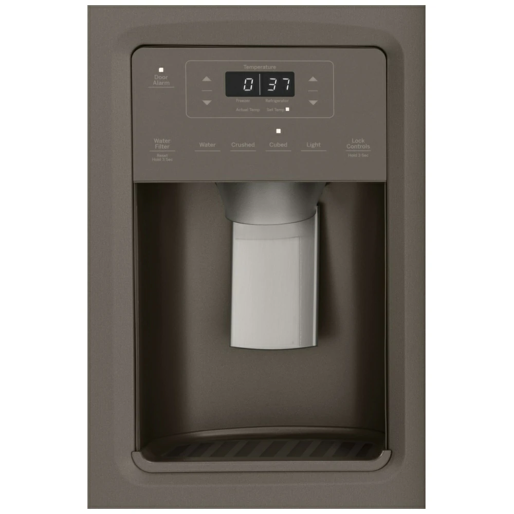 Réfrigérateur GE – 36″, 25,1 pi³, côte à côte, distributeur eau et glace, ardoise – GSS25IMNES