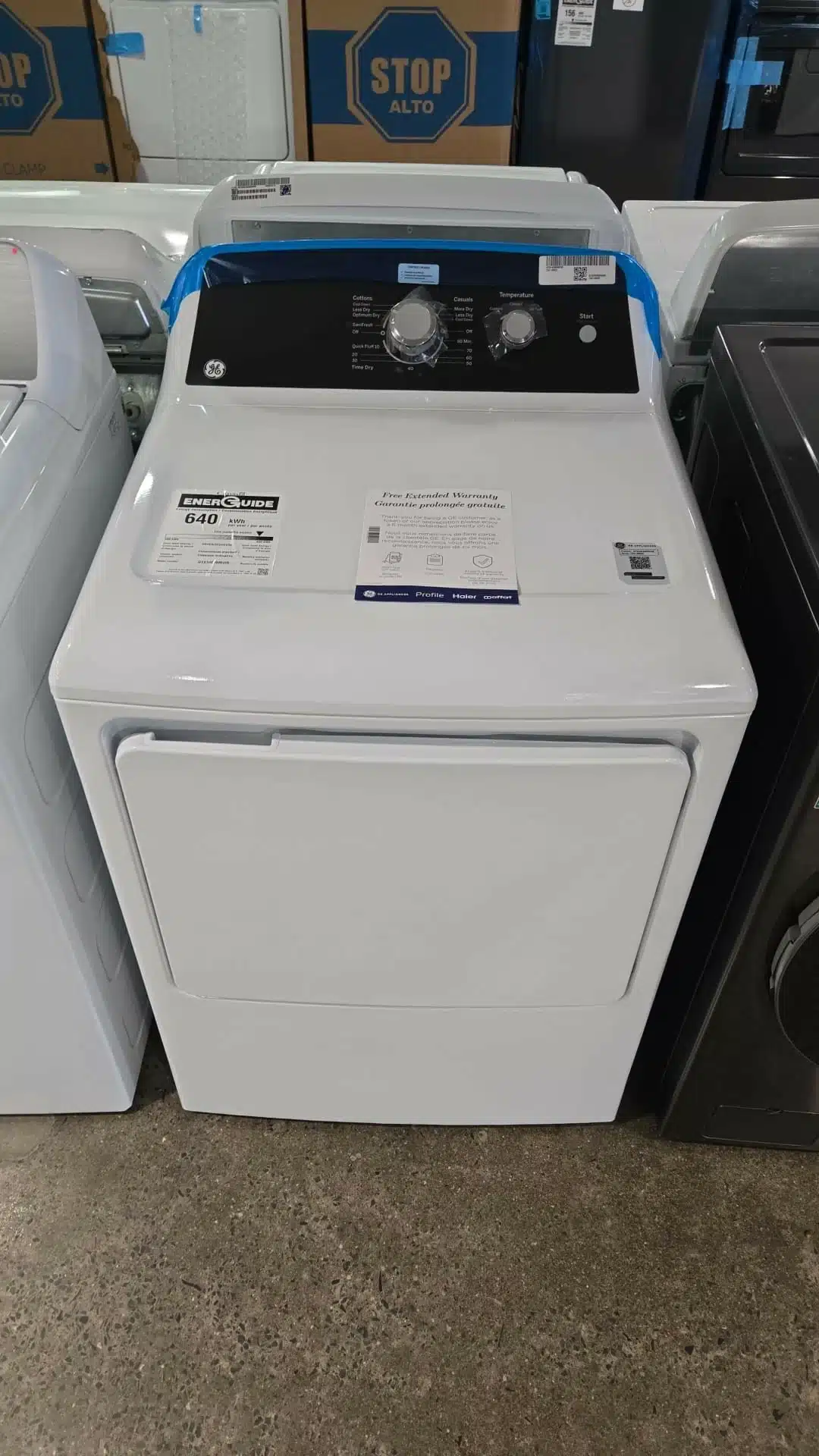 La sécheuse électrique ge GTX34EBMRWS est conçue dans un format standard de 27 pouces avec installation à conduit d’évacuation. Elle propose 13 cycles de séchage adaptés aux besoins quotidiens, permettant un séchage fiable pour différents types de tissus.
